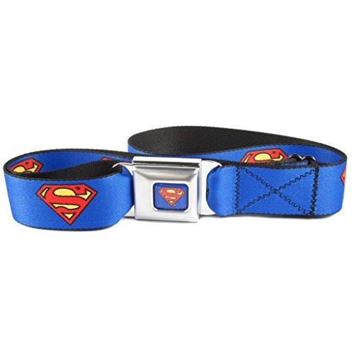 Buckle Down Unisex Seatbelt Buckle Superman Belt, Blue