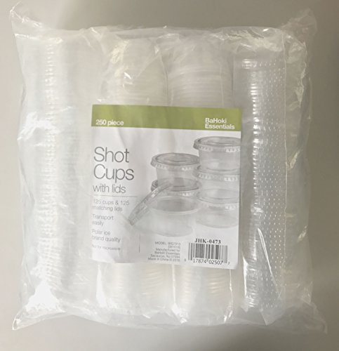 -. Feature : Bahoki Essentials Multi-Purpose Mini Cups are ideal for small portions of salad dressing, condiments, Jello shots and much more. / These 2-oz cups are suitable for packing small foods, liquids, and snacks. / Easy way to make single-serving size dressings, dips, and sauces. / Comes in a pack of 125 cups and lids.