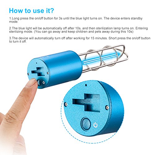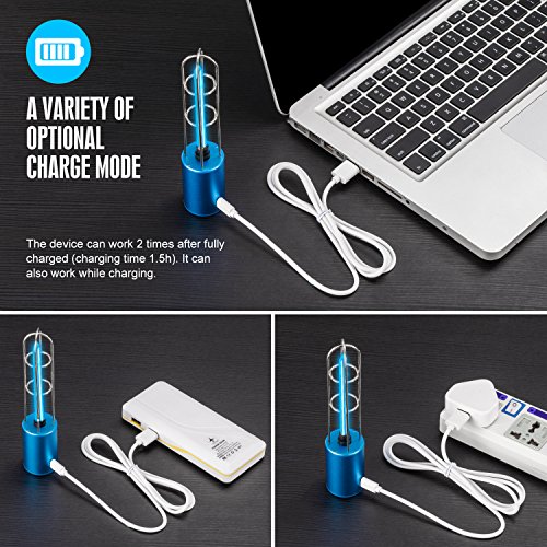 - RECHARGABLE: No batteries needed, UV Sterilizer Lamp will work after recharge or with power charging. Car recharge is OK.