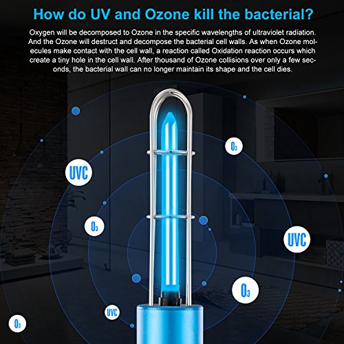 - KILLING 99% BACTERIAL: With the design of UV light and Ozone synchronize working, UV Sterilization Lamp is laboratory tested of killing most bacterial in space of 35-150 cu ft.