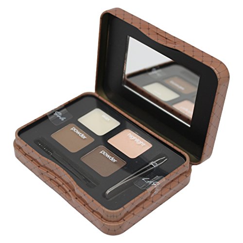 Includes two brow powder shades, highlighter, and wax