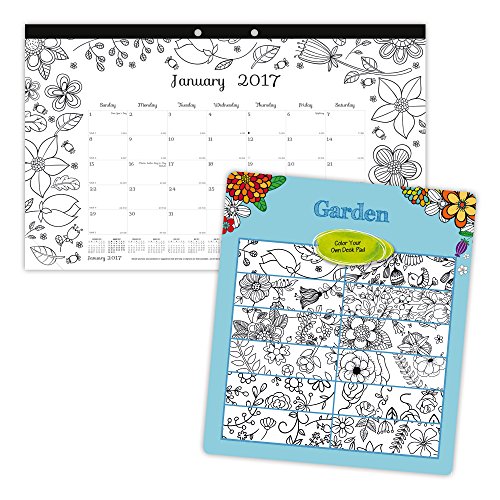 -. Title : Blueline 2017 Monthly Coloring Desk Pad Calendar, Garden, January - December, 17.75 x 10.875" (C2917003-17)