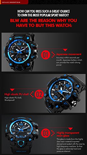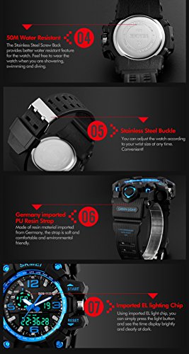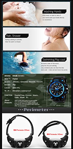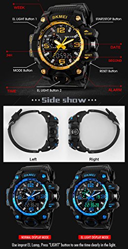 -. Binding : Watch -. Brand : SKMEI -. Department : Unisex-adult -. EAN : 0799619994410 -. Feature : 100% New high quality / Shows time digital numbers Digital And Analog Dual Display Sports Watch / Display time in numbers indicate the hour, minutes and seconds / Display the day & date 12h/24h / Four buttons to control different functions -. Label : SKMEI -. Manufacturer : SKMEI -. Model : SKMEI 1155 -. MPN : SKMEI 1155 -. PartNumber : SKMEI 1155 -. ProductGroup : Watch -. ProductTypeName : WATCH -. Publisher : SKMEI -. Studio : SKMEI -. Title : SKMEI Brand LED And Pointer Display 50M Multifunctional Waterproof Calendar Stopwatch Sports Watch -. UPC : 799619994410