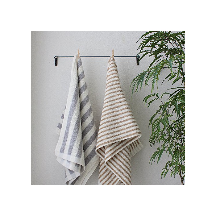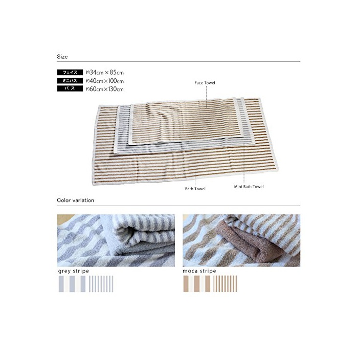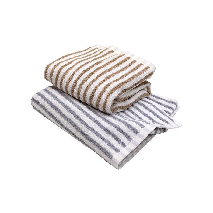 원본상품명: hiorie(ヒオリエ) 日本製 ホテルスタイルタオル バスタオル 2枚セット 細ストライプ モカ+グレ? 瞬間吸水