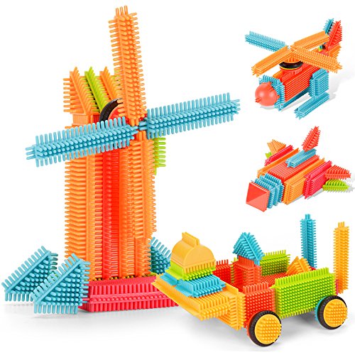 -. Feature : Idea Building Blocks - There are 150pcs in one set that made of high quality material, including 13 different shaped blocks in four different colors. / Press-together Construction - With the manual including 12 kinds of different spelling, children can build many creative designs such as robot, car and house. / Easy to Store - Come with a durable storage bag with handle, which make the bristle blocks easy to store and easy to carry. / Learning in Playing - Encourage creativity Imagination and color recognition ability of children. Fun and entertaining, this building toy will never go out of style. / Satisfaction Guarantee - A great preschool educational toys for your kids. We promise we will provide the 30-Day Money BackGuaranteeif you are not satisfied with it.