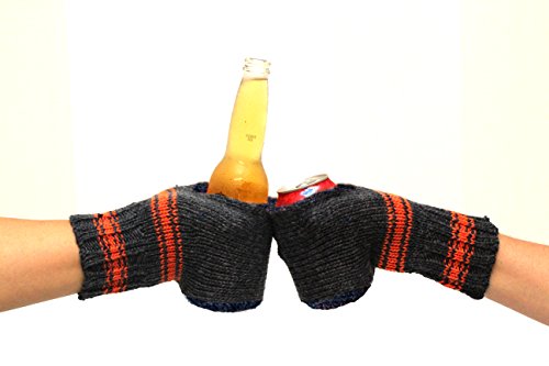 Boozy Kuzy Beer Gloves - Knit Beer Mitt (Twin Pack) Cold Drink & Beer Cozy Glove: Blue/Orange