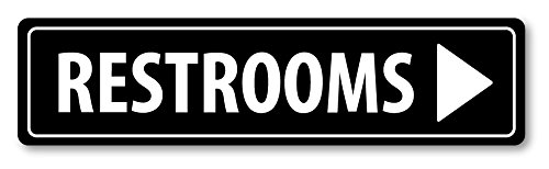 Grafken: MG1077 Aluminum Sign LARGE 2 ft x 6 in: RESTROOMS. ARROW RIGHT (black/white) Style 1