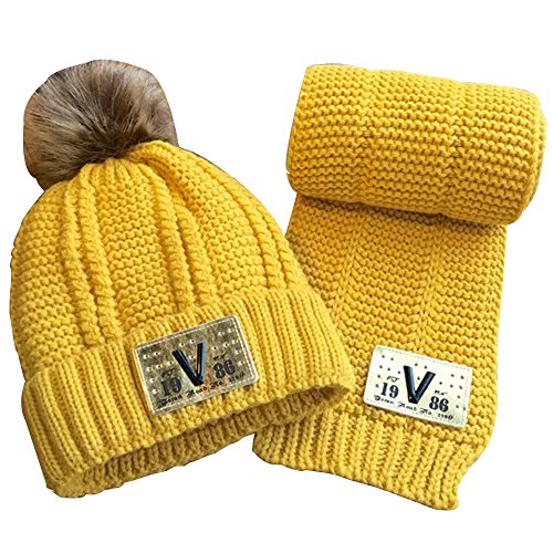 Product Description MiyaChic Baby Knit Hat and Scarf Unisex Infant Toddler Fleece-lined Beanie 2-8 Years Solid color with a Decoration Badge, V Letter on it. Suitable for 2-8 Years Kids Package Include 1*Hat and Scarf set Money Back Gurantee, Any Questions, Please Feel Free to Contact us. 0