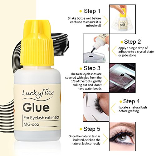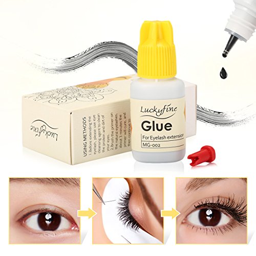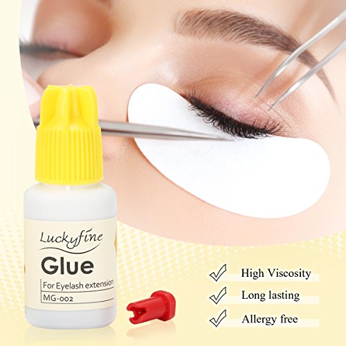 LuckyFine Eyelash Extension Glue - 10 ml / 4-5 Seconds Drying time / Retention 5-6 Weeks / LOW Fume / Allergy Free / Black Adhesive for Individual...