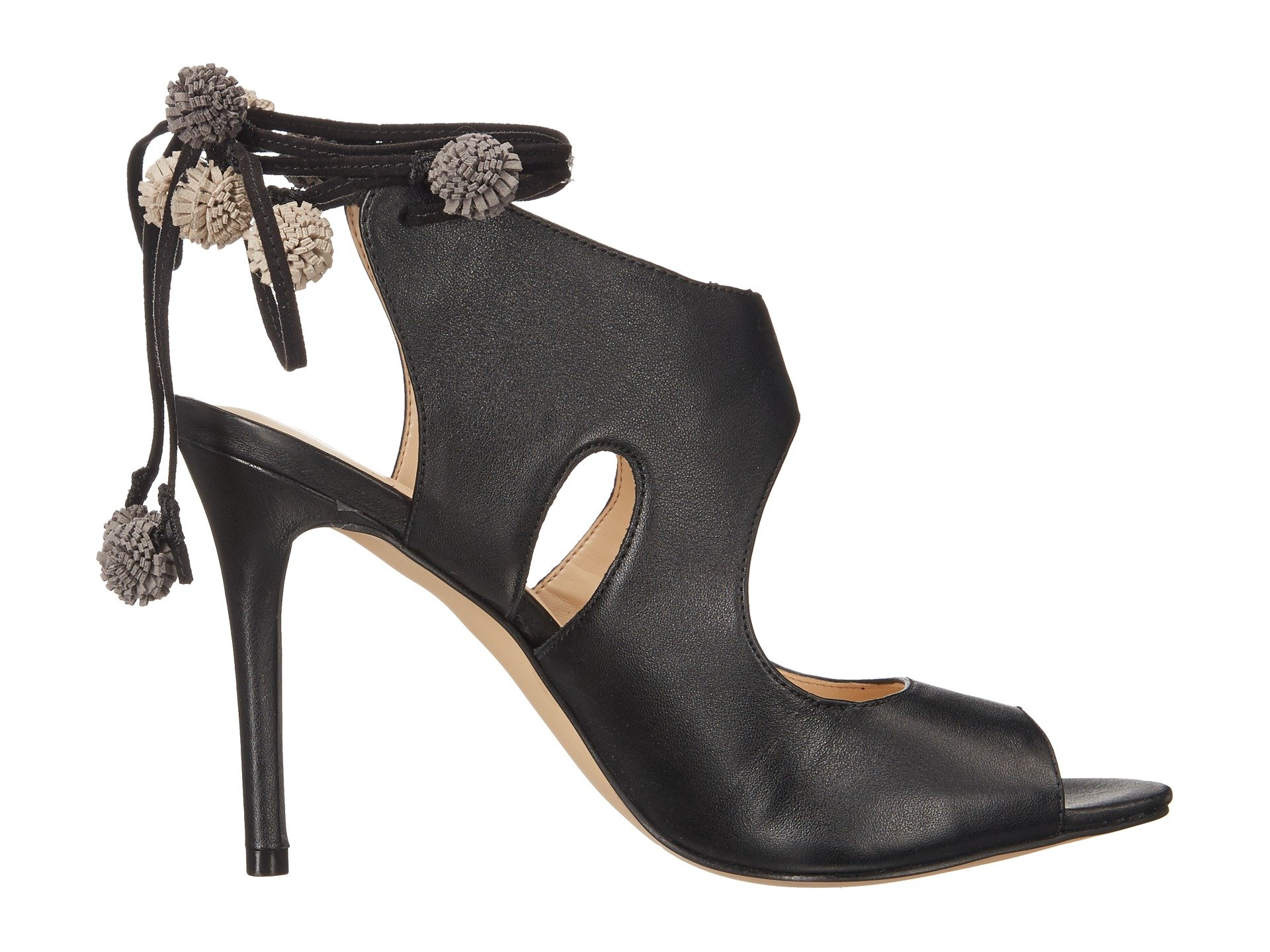 | Product Information SKU: #8851123Show off your sultry side this festival season in the boho-chic Maya sandal.Leather or suede upper material.Wraparound ankle strap with tie-up closure.Open toe.Cut-out details.Pom pom accents for added flair.Man-made lining.Lightly padded footbed.Wrapped heel.Man-made outsole.Imported.Product measurements were taken using size 5.5, width M. Please note that measurements may vary by size.Weight of footwear is based on a single item, not a pair.Measurements: Heel Height: 4 in Weight: 8 oz |