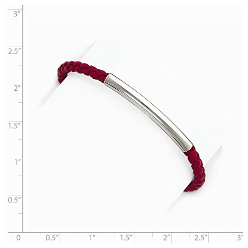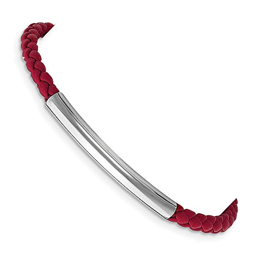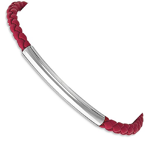 ICECARATS DESIGNER JEWELRY 925 STERLING SILVER BRAIDED RED LEATHER BRACELET 7 INCH