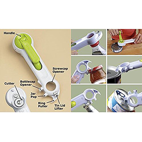 - Opens cans, bottles, and jars of all shapes and sizes