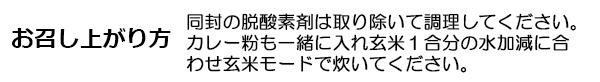 | 原材料 | 名称:穀類加工品 玄米(新潟県産)、精米(新潟県産)、大豆、乾燥人参(人参・ブドウ糖)、乾燥ごぼう(ごぼう・ブドウ糖)、カレー粉(原材料の一部に小麦・豚肉・りんごを含む) |