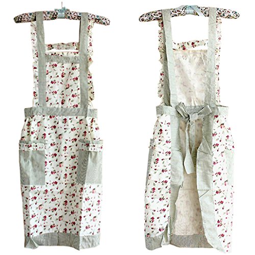 Hyzrz Stylish Flower Pattern Women's Fashion Floral Cotton Chef Cooking Cook Apron Bib with Pockets 11#