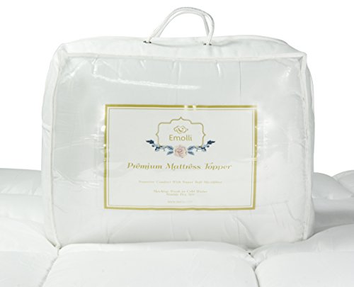 -. Title : Bed Mattress Topper, Emolli Hypoallergenic White Down Alternative Bed Mattress Pad - Plush , Overfilled, 1.18" Height
