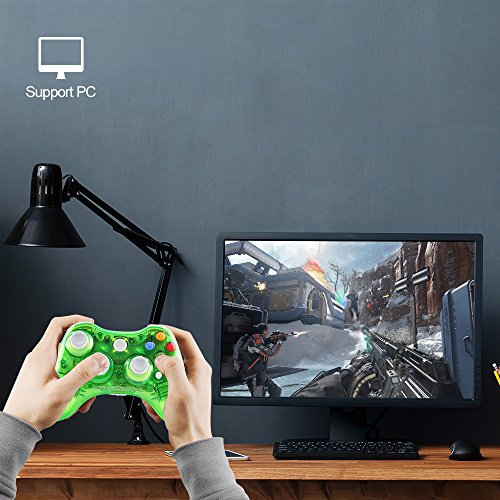 -. Title : Kycola GC21 Dual Vibration Wireless Gamepad Controller Transparent With LED for Microsoft Xbox 360 / PC (Green)