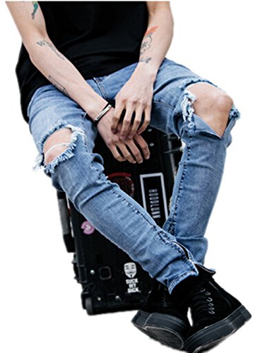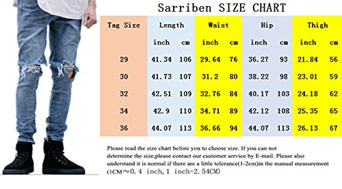 -. Feature : ***100% Brand new and high quality.Good quality fabric,and making style make you stylish and comfortable when wearing. / Zipper Fly,Mid-waist,Classic 5 Pockets Design,Knee Ripped Big Holes,Slightly Stretchy / It's cool and personalized,super unique and full of powerful street edge.Fashion guys must have one. / ***Suitable for enjoying your party,shopping,casual,travel,home and so on. / Welcome to Sarriben to buy more stylish and fashionable clothes.There must be some clothes that you like.Looking forward to your visit!