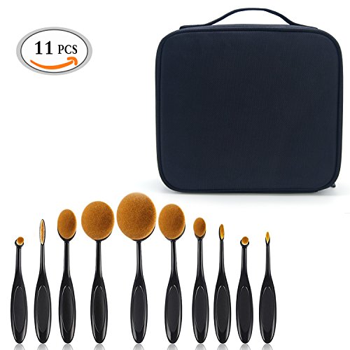 MLMSY 10Pcs Oval Toothbrush Design Makeup Brushes Set+ 1Pcs Cosmetic Case Organizer (Brush Set, BB)