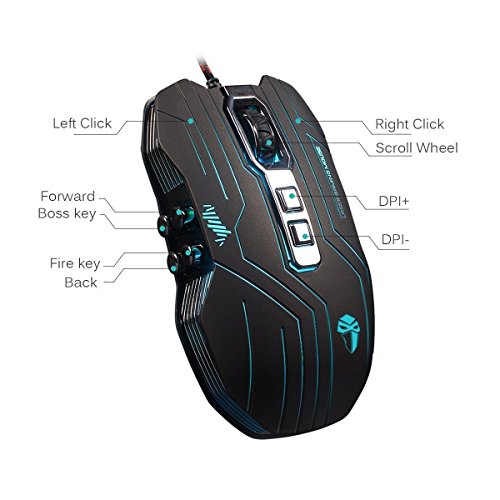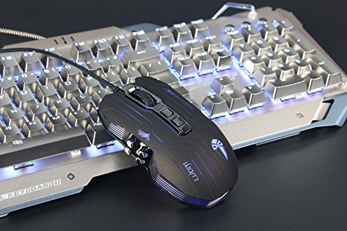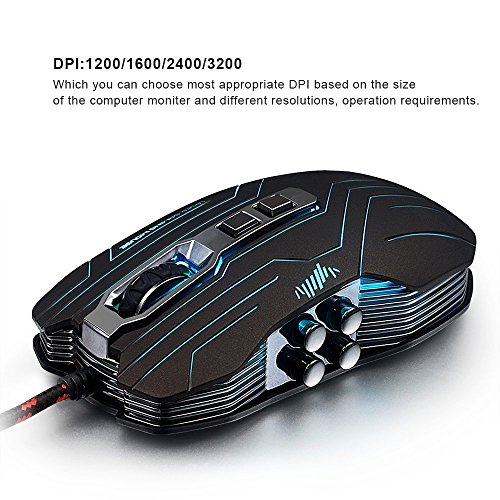 Runsen Gaming Mouse Wired LED Optical 9 Buttons with 1200/1600/2400/3200 DPI for Pc/Mac/Notebook(4 Colors Breath LED Backlight )(black)