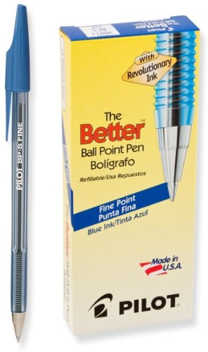 Pilot The Better Ballpoint Stick Pens, Fine Point, Blue Ink, Dozen Box (36011)