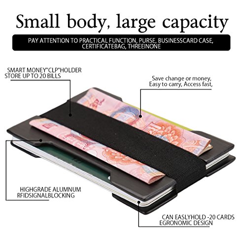 Binding : Apparel Product Description Great Quality SUPER SLIM: This wallet is as slim as they come! Minimalist as can be. If you appreciate your pocket space, then you will appreciate this wallet. Actually, you will love it! Perfect for front pocket wallet. TWO SILICONE BANDS INCLUDED: Small size holds 1-4 cards, and larger holds 4-10. No need to worry about band ripping, your in good hands. MONEY CLIP: Back side of wallet has flexible band so can keep cash in there. Use the inside for credit cards, and outside for money clip. RFID BLOCKING: Made out of RFID blocking technology, you no longer have to worry about thieves stealing your credit card information. BEAUTIFULLY DESIGNED: Brilliantly designed, this wallet is a true minimalist wallet, yet at the same, offers complete functionality and is easy to use.