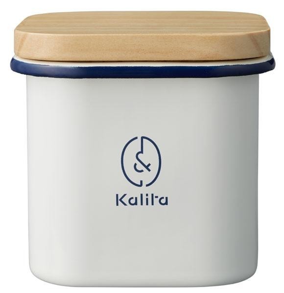 &Kalitaのロゴがプリントされた、角型キャニスター。コーヒー豆で約250g入ります。