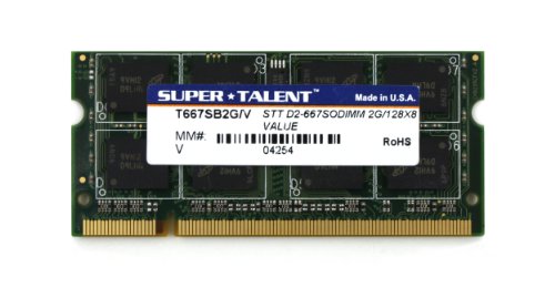 Super Talent DDR2-667 SODIMM 2GB/128 x 8 Value Notebook Memory T667SB2G/V
