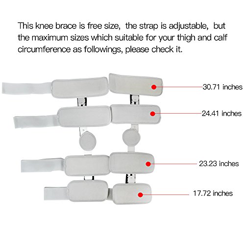 -. Feature : Indication: Conservative treatment of synthetical knee joint instability. ·Anterior cruciate ligament and posterior cruciate ligament(ACL+PCL) tear ·Fix and repair knee joint fracture, patellar fracture, dislocation, meniscus injury, muscle tone, contracture, arthritis and genu recurvatum disease etc. / Function and Characteristics:·Help knee joint to regain its original functions or functional training for long-term rehabilitation. ·High-duty military aluminum alloy support is ductility and can be adjusted as individual demand. ·Stabilize the knee joint by four protective straps because of osteoarthritis caused by knee joint instability. / The bilateral range-of-motion settings can be adjusted between 0° - 120° of flexion and 0° - 90° extension. / Open design, free size , suitable for thin or fat body type people / Size: free size ( fit right leg or left leg)
