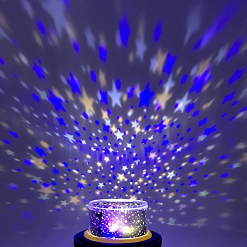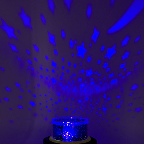 ♥GOOD FOR CHILD--It's a great Night light projector for kids. No noise 360 degree rotating lights with the moon and stars can make nice atmosphere for kids' sleep.
