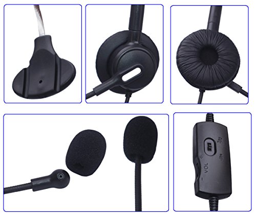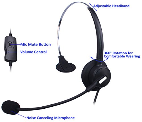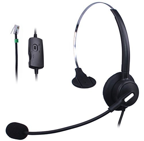 Wantek Wired Telephone RJ Headset with Flexible Noise Canceling Mic and Volume Mute Control for Aastra Shoretel Nortel Cisco E20 Polycom Digium Altigen Comdial & Starleaf Office IP Phones(H110B003A)