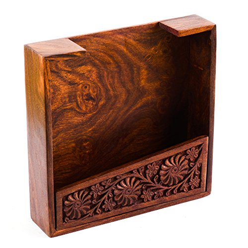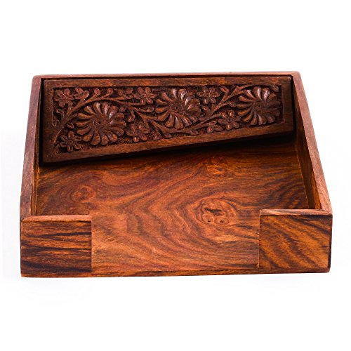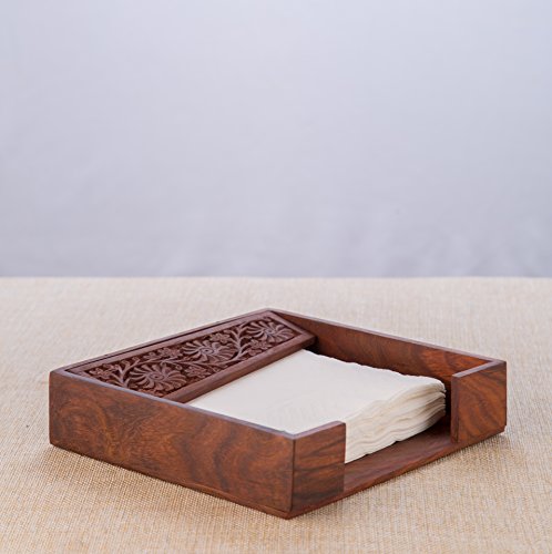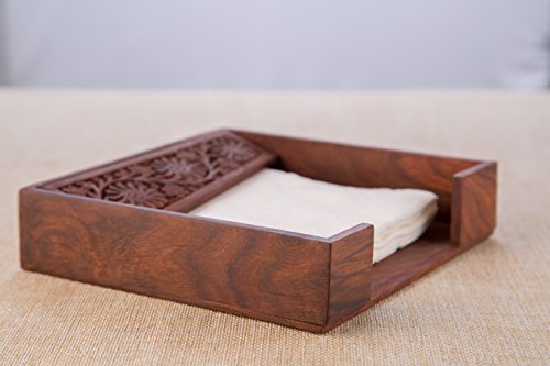 Rusticity Wood Paper Napkin Holder for Napkin and Tissues - Ornate Design | Handmade | (7.5x7.5 in)
