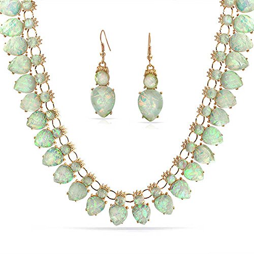 Simulated Opalite Jewelry Set with Dangle Earrings and Statement Necklace