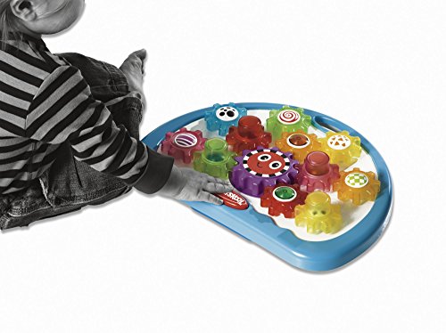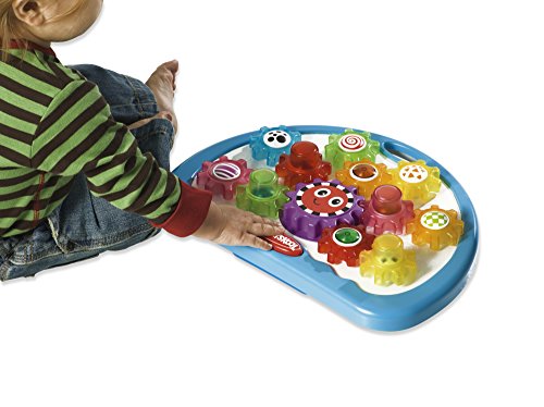 Colorful, captivating set of gears! Gears spin as twinkling lights flash! Fun music plays! Older babies can remove gears and stack them!