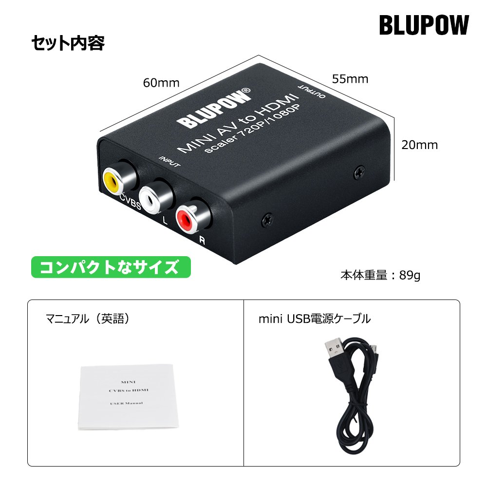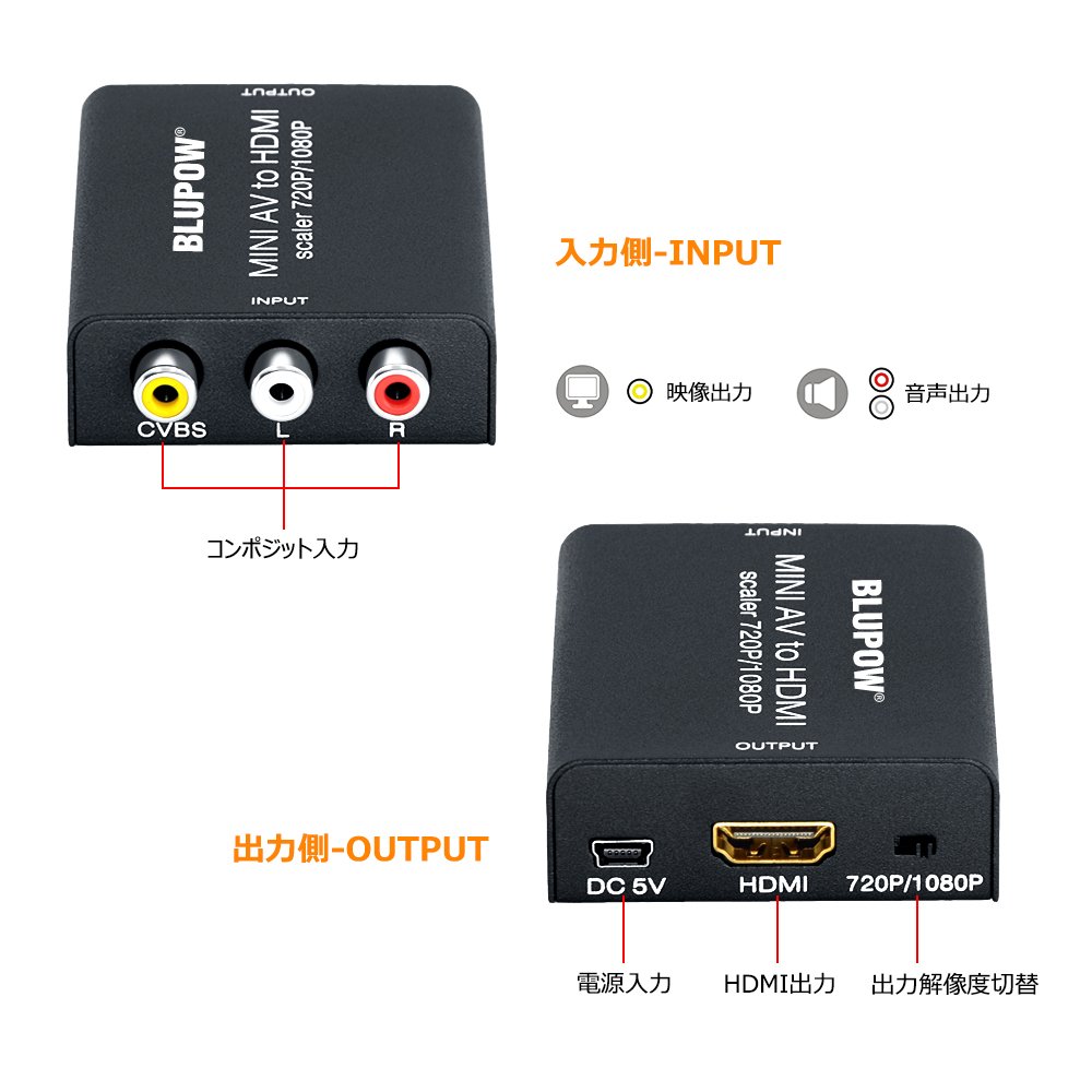 If you have the BLUPOW RCA to HDMI conversion adapter, you can enjoy the video and audio of older AV equipment, game machines etc. with only the composite (RCA) terminal with HDTV, HD monitor and projector with HDMI terminal.