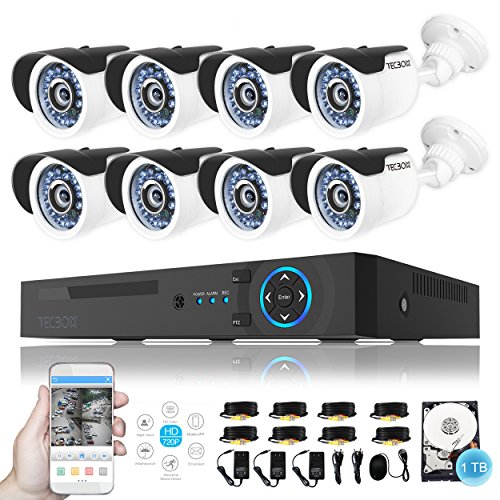 Security Camera System 720P 8 Channel Home/Outdoor Security DVR System 1TB Hard Drive with 8 Surveillance Cameras IP67 Weatherproof CCTV Camera System Remote View Video Surveillance System