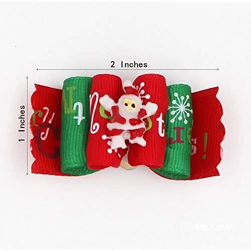 -. Feature : Mixed colors:Different colors of Christmas pet hair bows are provided,they can fit your puppy or cat perfectly / Festival necessary:You can dress these pretty hair bows to your dog or cat in festival and it'll make them more adorable and attractive / Portable design:They are designed very small, you can put them in your pocket and it's very convenient to your daily walking / Durable material:Made of high quality Nylon and rubber bands,100% brand new,fine workmanship and durable / More choices:Designed to three size,1.5cm W*3cm L,2cm W*4cm L,2.5cm W*5cm L,mixed all colors and designs in random