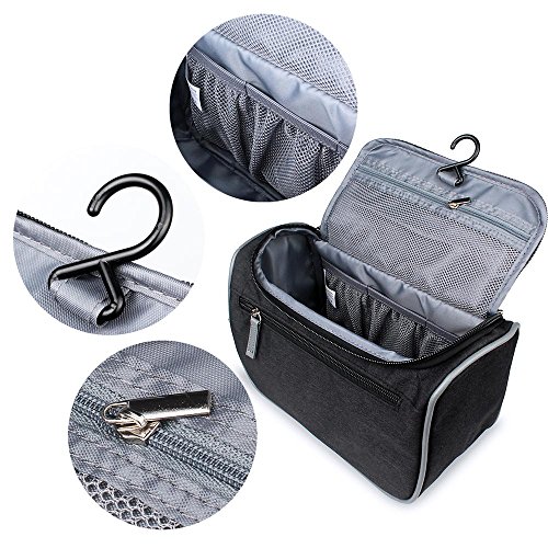- [Super Great Quality] Our hanging toiletry bags are produced with upgraded qualified zippers which passed factory 100,000 times open&close testing. No worry about zipper’s broken. Outside with durable and waterproof Oxford cloth which can be used in some wet environment or in case of water splashing. The interior of wash bag designed with 4 mesh compartments to make your makeup, towels, dopp kits well organized and easily viewing.