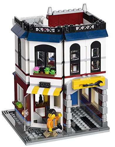 -. Feature : Enthält 3 Minifiguren: 2 Männer und eine Frau / Mit 2 separaten Gebäuden: Fahrradladen und Café / Der Fahrradladen ist ausgestattet mit Laderampe, abnehmbarem roten Fahrrad und Werkzeugen. Im ersten Stock befindet sich außerdem eine kleine Wohnung mit Küchenbereich mit Spüle und Herd, einem Bett und Zugang zur Dachterrasse mit Grill. / Das Café verfügt über Außensitzplätze, Geldautomat, Geldschein, Kasse, 2 Muffins, Espressomaschine mit Tassen, gemütliche Sitzplätze innen mit Vorhängen, Treppe zur Wohnung im ersten Stock mit Kommode, Lampe, Stuhl und Zugang zur Dachterrasse mit Gemüsegarten / Ein Auto und ein Vogel zum Zusammenbauen sind außerdem enthalten