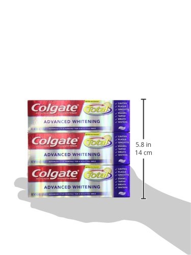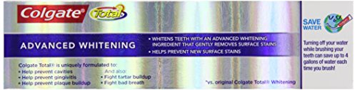 Experience a clean and healthy mouth when you brush daily with Colgate Total Advanced Whitening. It contains an advanced cleaning system that helps the whole family get an extra clean mouth and optimum oral health. Brushing twice a day with Colgate Total Advanced Whitening will help prevent cavities, tartar buildup and gingivitis, and help whiten teeth and fight bad breath. The dual-silica technology helps remove 80% of surface stains (based upon 6 week clinical data) and helps prevent new surface stains from forming. The fresh gel flavor of this toothpaste will enhance your brushing experience and leave your mouth and breath fresh and clean.Feature