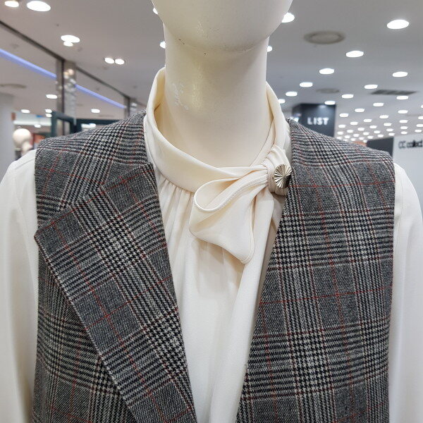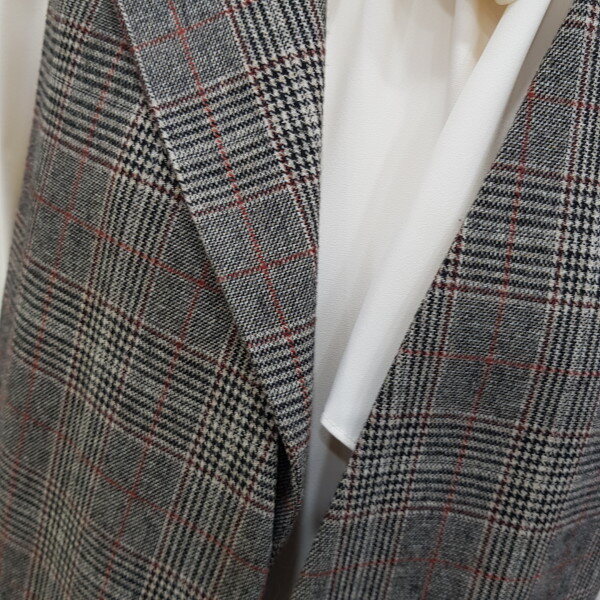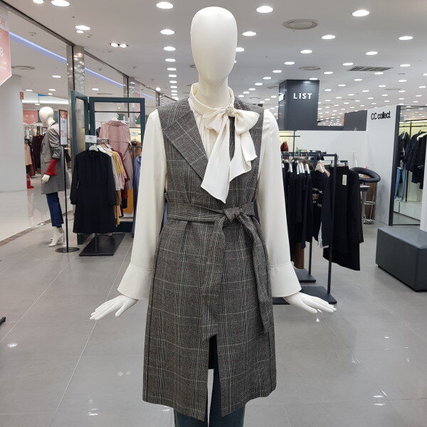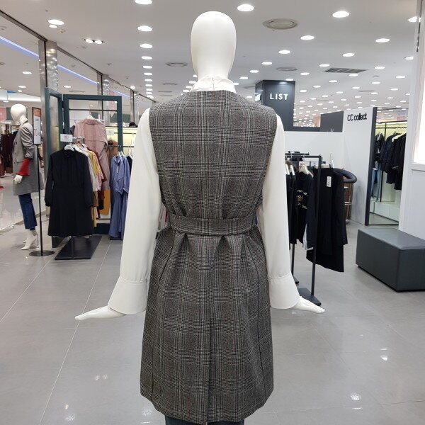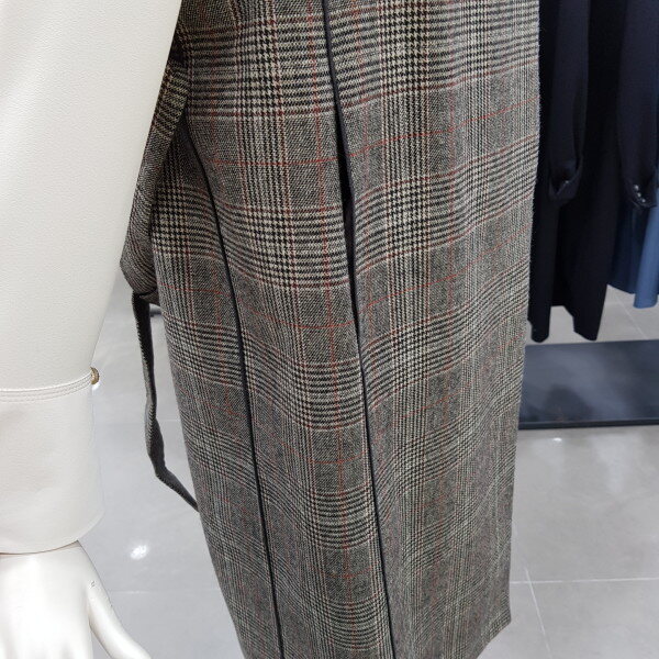 모혼방 롱베스트예요. 체크무늬에 언발카라가 세련되보여요