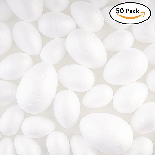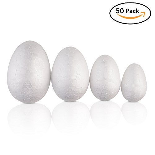 50 Pack - Large Set Assorted Styrofoam Easter eggs - Variety of Sizes - Ideal Easter Children Arts & Craft Gift for cutting, shaping & painting decorations