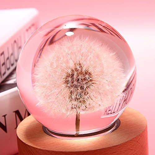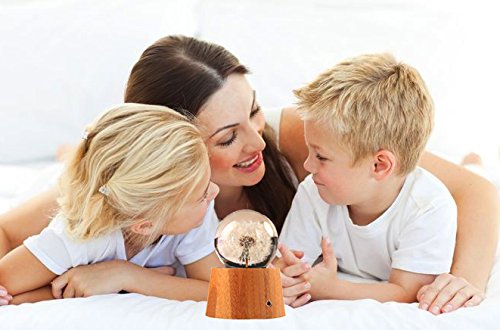 Real dandelion specimens crystal ball with wood LED Base Christmas/Birthday Gift(Warm white)