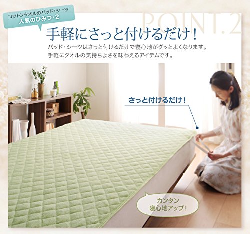 -. Feature : 20色から選べる!お買い得同色2枚セット!ザブザブ洗えて気持ちいい!コットンタオルの敷パッド ダブルの「アイボリー 」のタイプです。商品機能の説明上、タイトルと違う色やサイズの商品写真を掲載する場合がございます。あくまでも商品タイトルの「色」や「サイズ」が正しいものとなりますことをご理解の上ご購入ください。 / リピーター続出!80,000人が愛用中!20色コットンタオルシリーズボックスシーツに特大サイズ(ワイドキング・ファミリーサイズ)新登場!ザブザブ洗えて気持ちいい!コットンタオルのパッド・シーツまとめ買いがお得!!20色x7サイズコットンタオルパッド・シーツさっと敷くだけでさらさら快適!コットン100%のタオル素材!インテリアに合わせて選べる!20COLOR暮らしに合わせて選べる!4TYPE敷パッドパッド一体型ボックスシーツボックスシーツ和式用和式用フィットシーツぴったりがみつかる!7SIZEシングルセミダブルダブルクイーンキング限定10色!敷パッドパッド一体型ボックスシーツボックスシーツに新登場!ワイドキング(シングルサイズx2約200cm)ファミリーサイズ(セミダブルサイズx2約240cm)ベッド2台を並べて使っている人にぴったりサイズ!コットンタオルのパッド・シーツ人気のひみつ1汗をか / いてもサラサラ快適!きめ細かなパイルは暑い季節には汗や湿気を吸い取ってくれて、べたつかず、さらさら快適。親しみあるタオル素材にふわっと触れるだけで癒され、なんだか安心して、365日ぐっすり眠れそう。コットン100%の心地よさ肌にあたる部分の素材はコットン100%。肌にやさしく、天然素材ならではの心地よさを感じることができます。大人気のコットンタオルその肌触りに実感の声当社のコットンタオル商品の肌触りを実感されたお客様からたくさんのお声を頂いております。さらっとしてて、素肌に気持ちいい!(20代女性)やわらかくってずっと撫でていたい!(30代女性)コットンタオルのパッド・シーツ人気のひみつ2手軽にさっと付けるだけ!パッド・シーツはさっとつけるだけで寝心地がグッとよくなります。手軽にタオルの気持ちよさを味わえるアイテムです。コットンタオルのパッド・シーツ人気のひみつ3ザブザブ洗えて気持ちいい! / 汗をかいてもすぐ洗えるからいつでも清潔キープで気持ちいい。洗いたてのふかふかのタオルに飛び込むような至福の心地よさをいつでも感じることができます。タオル素材はお洗濯で、やわらかさや香りを自分好みに変えられるのもうれしい。自宅で洗えるご家庭の洗濯機で丸洗いできるのでこまめに洗いたい季節にもぴったり。汚れもさっと落とせて、乾きも早く、手軽に洗い替えできるから何枚でもほしくなるアイテムです。※お洗濯の際は洗濯ネットをご使用ください。暮らしに合わせて選べる!4TYPE1.敷パッドパチンと付けるだけ!ベッドにも敷布団にも使えるスタンダードなタイプ。着脱カンタン!寝心地アップ!4隅ゴムバンド仕様2.パッド一体型ボックスシーツパッドとボックスシーツが一緒になった便利なタイプ。洗濯の量も減る&見た目もすっきり!スマートに寝心地アップ!全周ゴム仕様3.ボックスシーツマットレスにかぶせるだけ!カンタンに肌触り