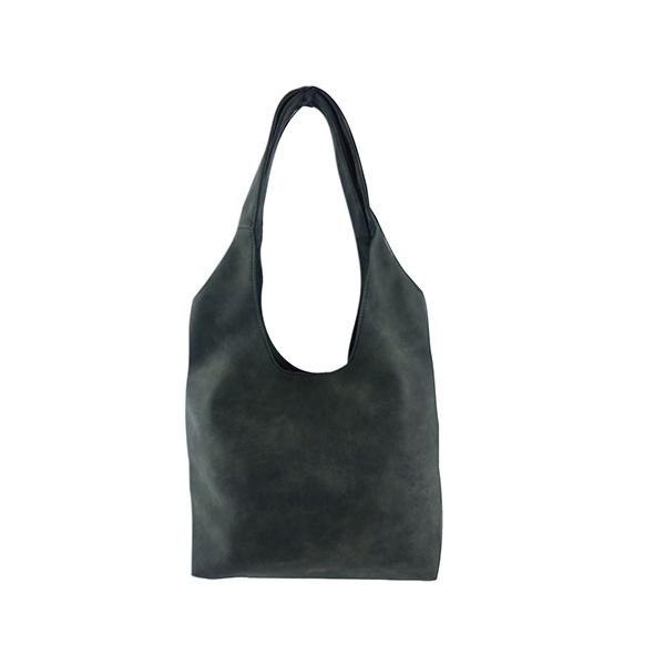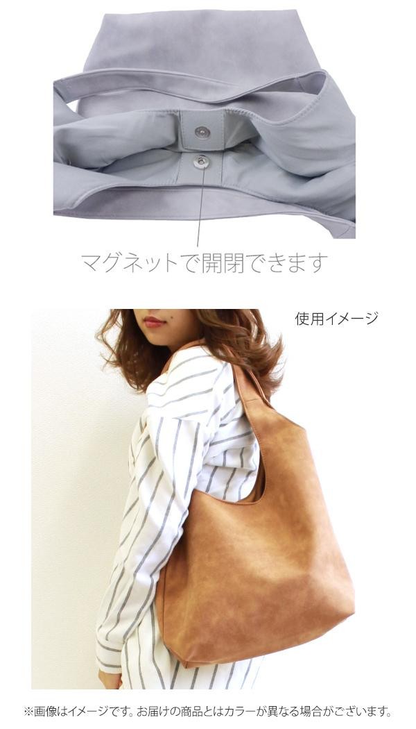 合皮の質感が気持ちの良いバルーントート。内側には小物の収納に便利なファスナーポケットと、パッチポケット付き。