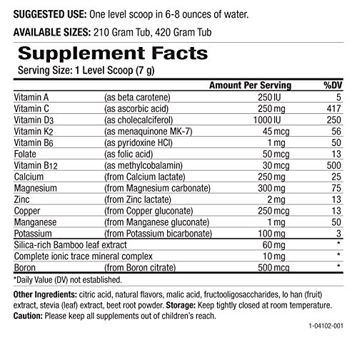 Ionic Fizz Formulas Are The Finest Bone Support Supplements Ever Made! Calcium can reach your bones only if sufficient magnesium is present. When calcium does not reach the bones, it can form plaque in your arteries, spurs on your bones, and stones in your kidneys. It can also cause calcification of cardiovascular, brain and other tissues. Each scoop of Ionic-Fizz Super D-K Calcium Plus provides 1000 IUs of vitamin D3 and 45 mcg of the MK7 form of vitamin K2 (by far the best form for building strong, healthy bones). It also provides 250 mg of calcium and 300 mg of magnesium (a nutrient in which over 80% of Americans are deficient) in pure, ionic form (the only form that can be absorbed through both active mineral transport and passive diffusion!). Sufficient magnesium is vital for healthy bones and blood sugar levels, arterial and cardiovascular strength, correct brain function and to produce energy. Ionic-Fizz Super D-K Calcium Plus is a delicious beverage (actually, a powder you mix gently into water) that comes in three tasty flavors. Beyond calcium and magnesium, it provides a host of co-nutrients required for strong bones and health in general. In short, Ionic-Fizz formulas are the finest bone support supplements ever made. Don't Wait To Improve Your Bone Health! Get Your Ionic Fizz Super D-K Calcium Plus Today!Feature