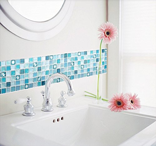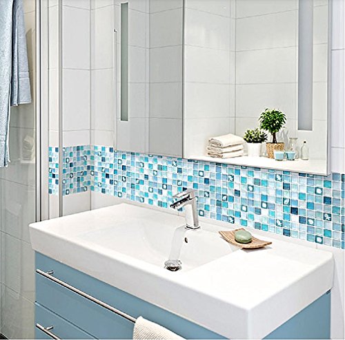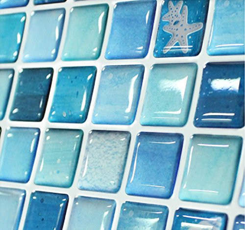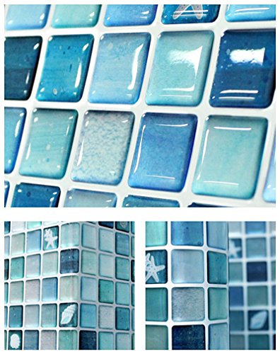 Beaustile Mosaic 3D Wall Stickers 4 Sheets Home Decor Blue Art Fire Retardant Backsplash Wallpaper Bathroom Kitchen DIY
