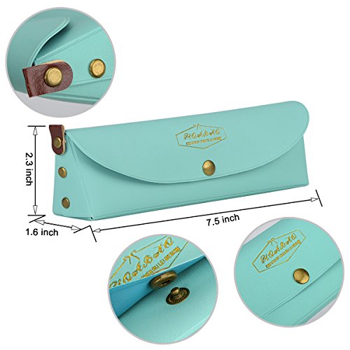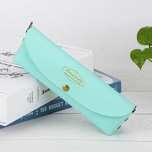 Aintel Pencil Bag Pen Case, Real Leather Pencil Holders Pouch with Button Snap for Men, Women, Students & Professionals, for Stationery, Art Utensils, & More, Packaged in a Gift Box, Mint Color