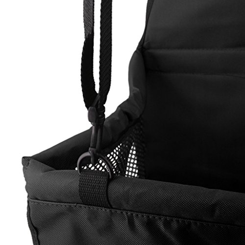 A zippered front compartment makes for a convenient place to store treats or toys and a padded seating area provides a comfortable ride