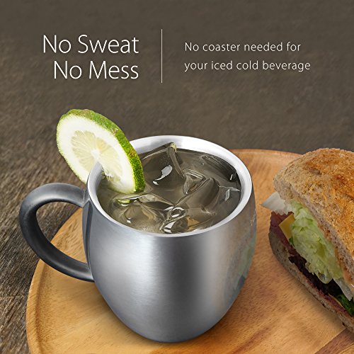 SWEAT FREE - Even filled with ice cold water, the double wall coffee mug can prevent any sweating on the outside without making a mess