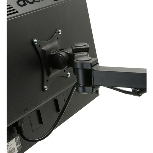 -. Feature : Reclaim valuable desk space-requires only 3.5" x 4" of mounting area / Reduces neck and eye strain by placing monitor at optimum viewing height and angle / Heavy-duty design will not sag over time / Integrated cable management for a smart, clean appearance / Increases productivity and efficiency